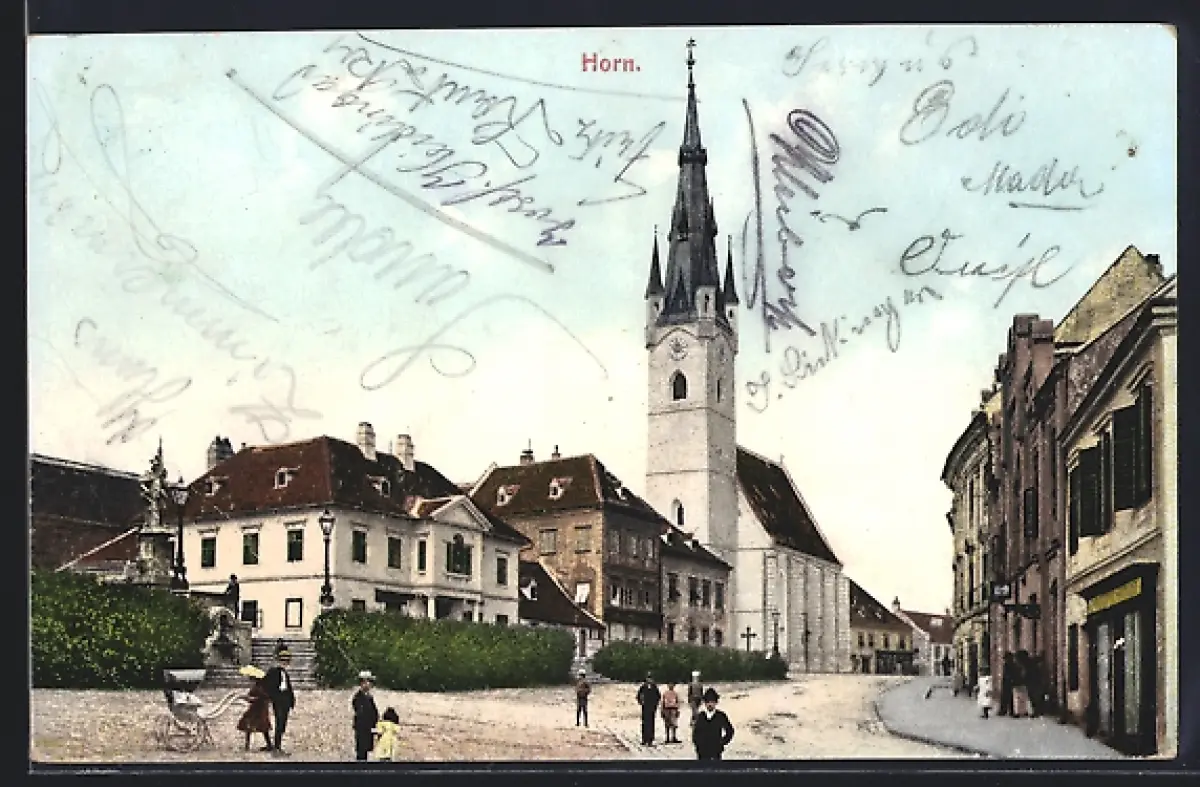 AK Horn, Strassenpartie mit Kirche