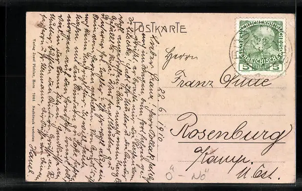 alte Ansichtskarte, gelaufen 1910, Stempelspur, guter Zustand