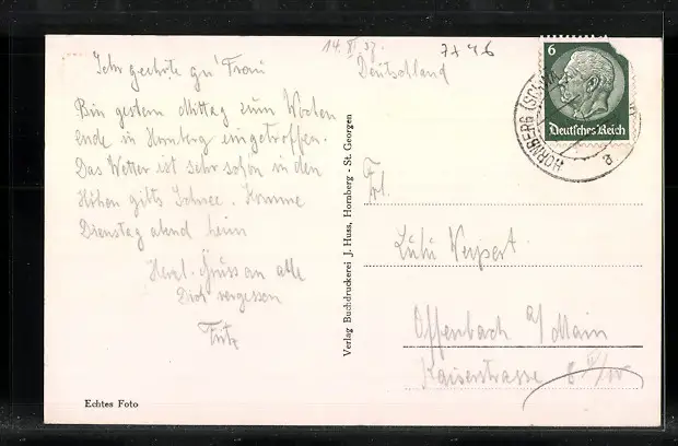 alte Ansichtskarte, gelaufen 1937, Briefmarke tw. entfernt, guter Zustand