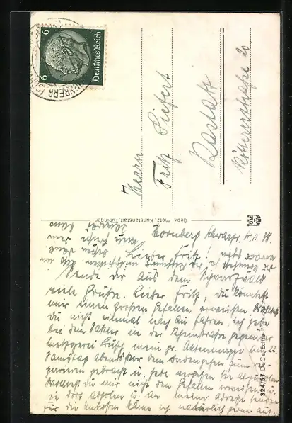 alte Ansichtskarte, gelaufen 1938, Bugspur li. unten, guter Zustand