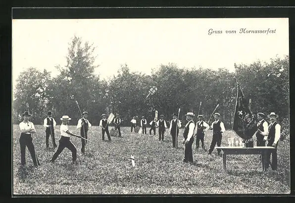 AK Hornusserfest, Mannschaft beim Training, Vereinsfahne