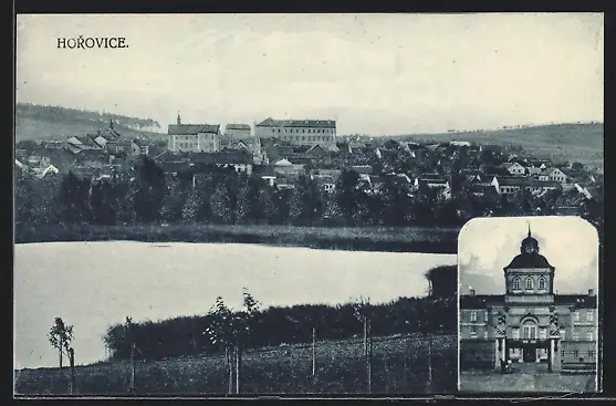 AK Horovice, Ortsansicht mit Bäumen