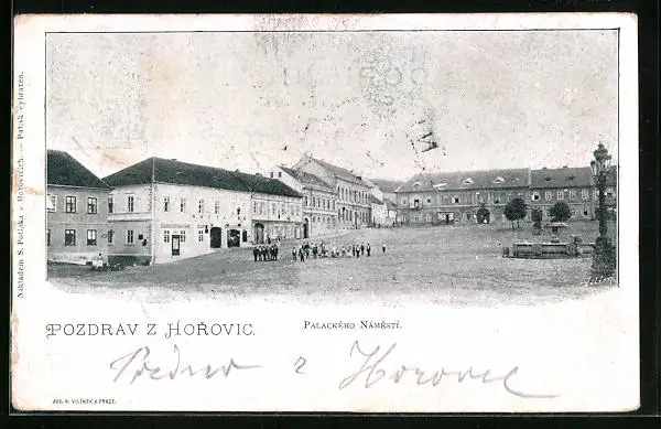 AK Horovice, Palackeho Namesti, Passanten am Brunnen