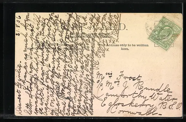 gelaufen 1906, Eckknicke li. oben u. re. unten, guter Zustand