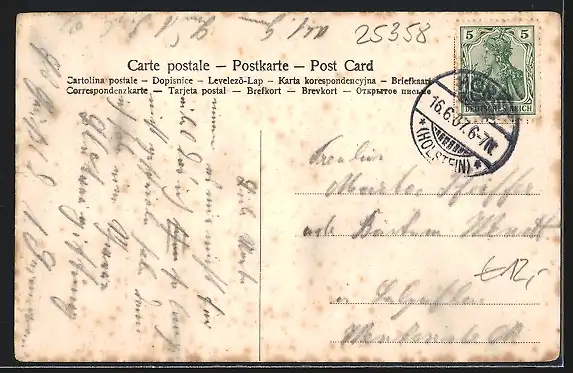 alte Ansichtskarte, gelaufen 1907, Einriss re. mittig, guter Zustand