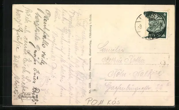 alte Ansichtskarte, gelaufen, Briefmarke entfernt, guter Zustand