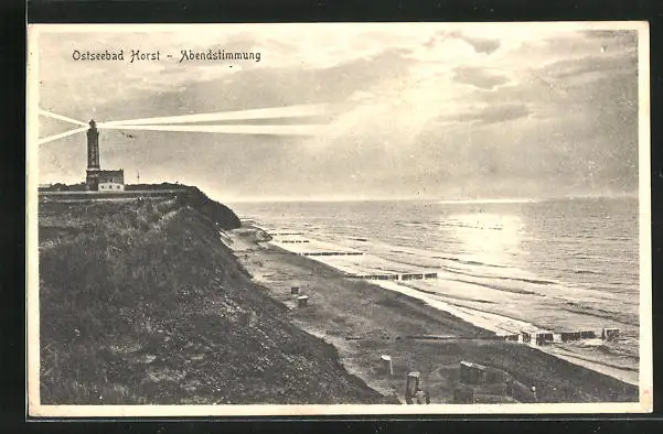 AK Horst, Strandpartie mit Leuchtturm bei Abendstimmung