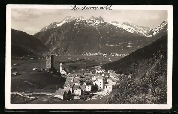 AK Hospenthal, Ortsansicht gegen Andermatt und Oberalp