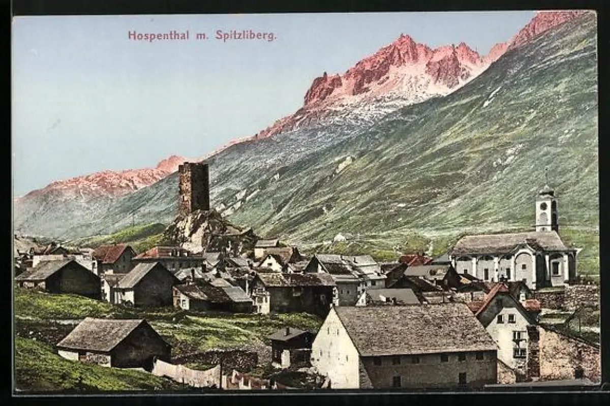 AK Hospenthal, Ortsansicht mit Spitzliberg