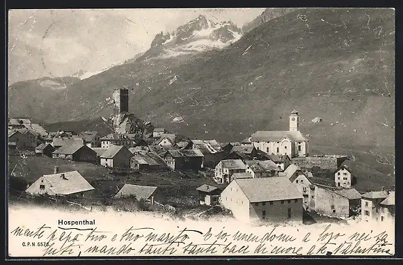 AK Hospenthal, Ortspartie mit Kirche