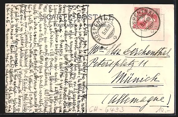 alte Ansichtskarte, gelaufen 1908, Eckknick li. oben, guter Zustand