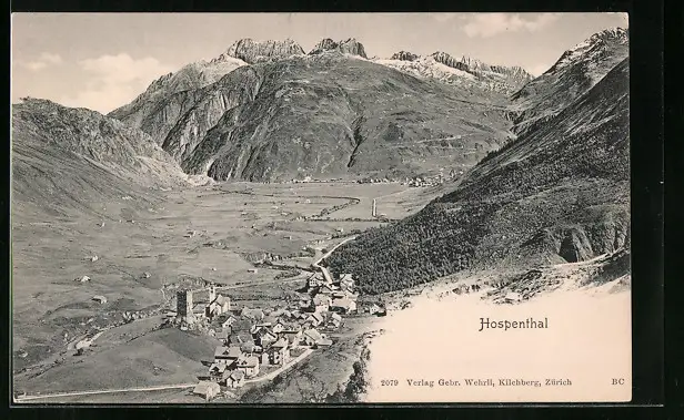 AK Hospenthal, Totalansicht aus der Vogelschau