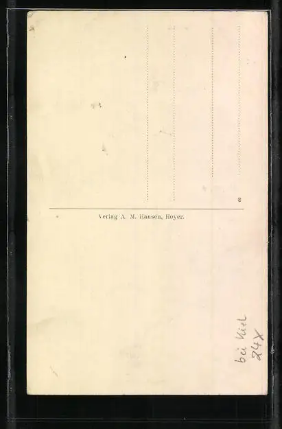 Personenbezogene Daten auf der Rückseite der Karte wurden durch blauen Textmarker unkenntlich gemacht. Die blauen Stellen sind auf die Vorderseite durchgeweicht und wirken sich negativ auf das Postkartenfoto aus