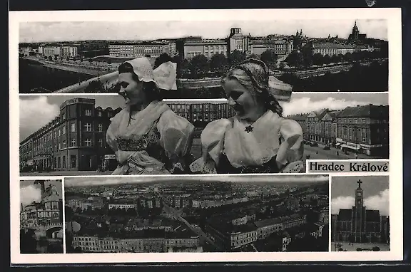 AK Hradec Kralove, Frauen in Tracht, Ortsansichten