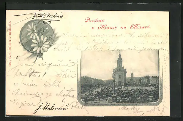 AK Hranice, Denkmal inmitten des Marktes vor Kirche