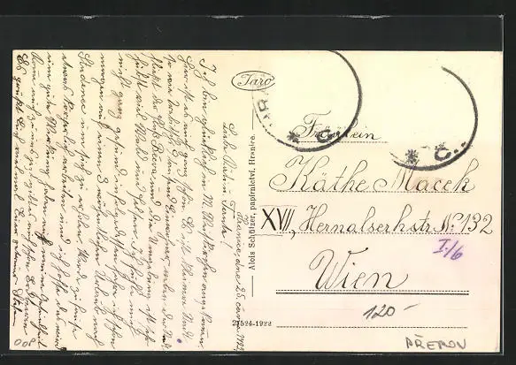 alte Ansichtskarte, gelaufen 1922, Briefmarke entfernt, guter Zustand