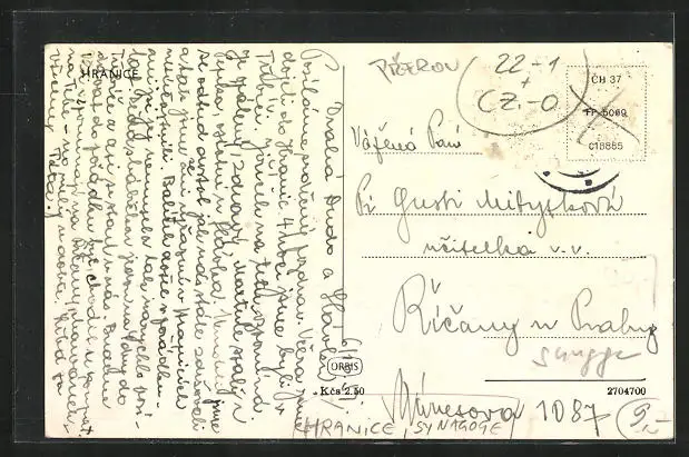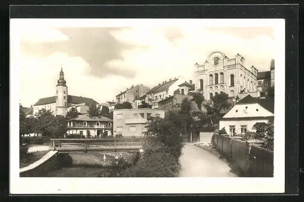 AK Hranice, Strassenpartie mit Blick zur Synagoge