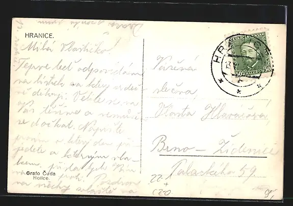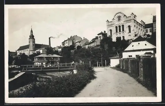 AK Hranice, Strassenpartie mit Blick zur Synagoge