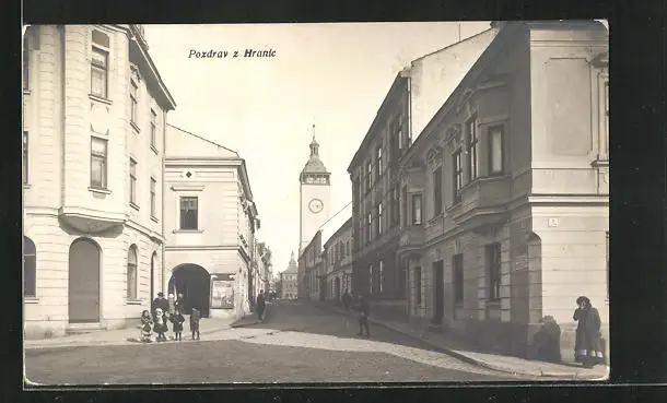 AK Hranice, Strassenpartie mit Gebäudeansicht