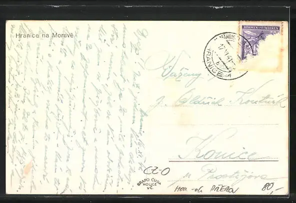 gelaufen 1941, Briefmarke tw. entfernt, guter Zustand