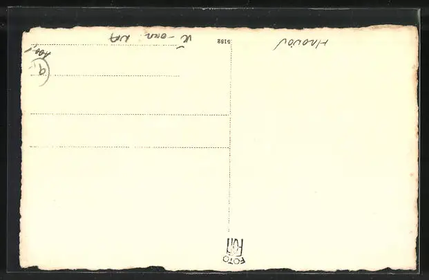 Personenbezogene Daten auf der Rückseite der Karte wurden durch blauen Textmarker unkenntlich gemacht. Die blauen Stellen sind auf die Vorderseite durchgeweicht und wirken sich negativ auf das Postkartenfoto aus