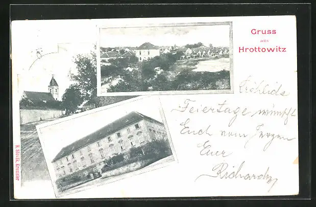 AK Hrottowitz, Teilansicht, Kirche, Gebäudeansicht