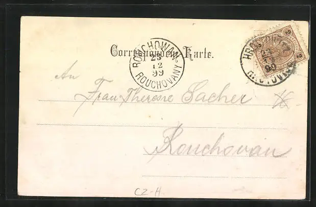 alte Ansichtskarte, gelaufen 1899, Eckknick re. unten, Oberflächenschaden, Stempelspur, guter Zustand