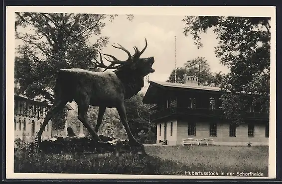 AK Hubertusstock in der Schorfheide, Hirsch am Jagdschloss