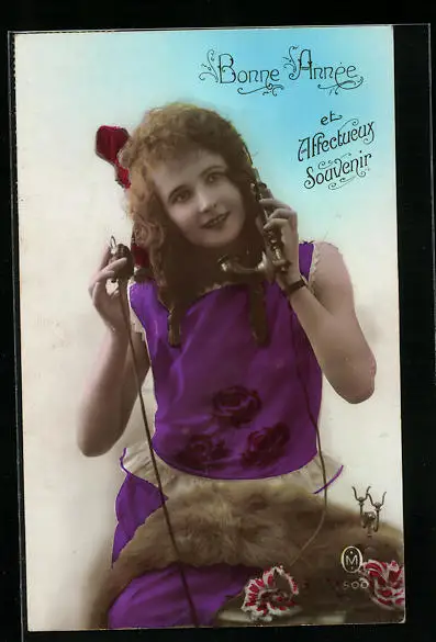 AK Hübsche Dame am Telefon