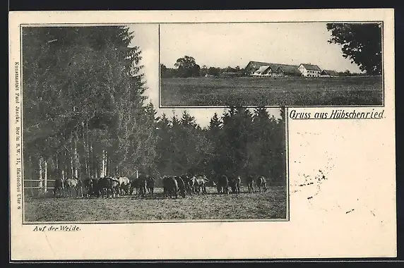 AK Hübschenried, Ortsansicht, Kühe auf der Weide
