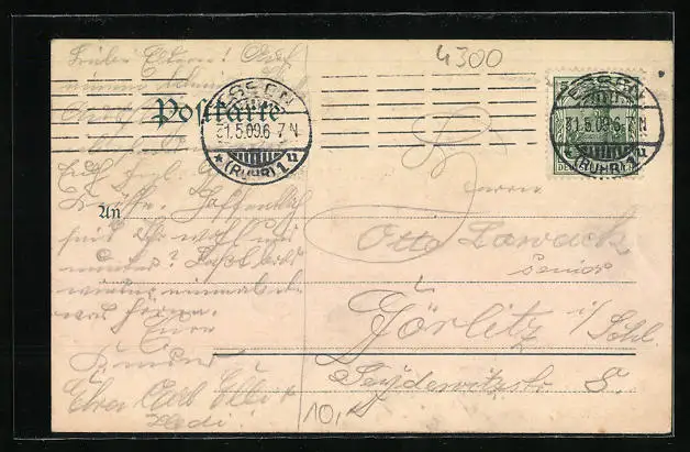 alte Ansichtskarte, gelaufen 1909, Stempelspur, guter Zustand