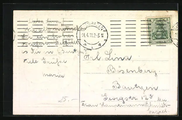 alte Ansichtskarte, gelaufen 1911, Stempelspur, guter Zustand