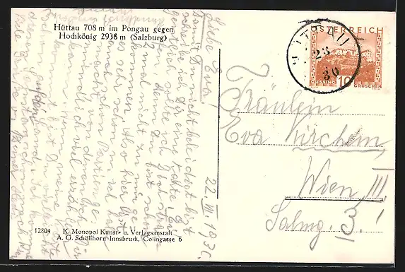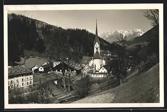 AK Hüttau, Ortsansicht gegen Hochkönig