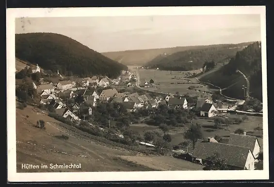 AK Hütten im Schmiechtal, Ortsansicht mit Hütten