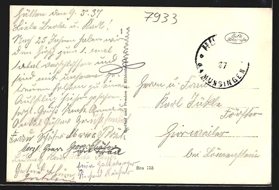 alte Ansichtskarte, gelaufen 1937, Briefmarke entfernt, guter Zustand
