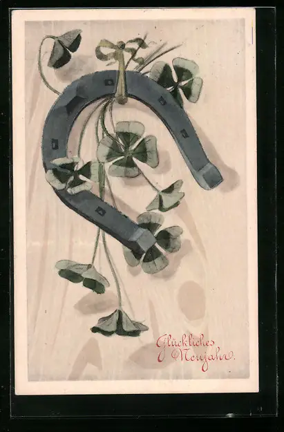 AK Hufeisen mit Kleeblättern zu Neujahr