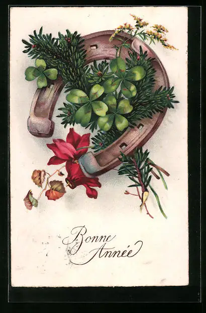 AK Hufeisen mit Tannenzweig und Kleeblättern