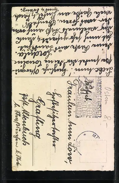 alte Ansichtskarte, gelaufen, Briefmarke entfernt, Stempelspur, guter Zustand