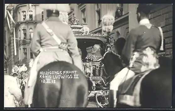 AK Huldigungsfahrt 12.11.1913, König Ludwig III.