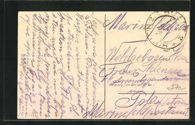 alte Ansichtskarte, gelaufen als Feldpost, Stempelspur, sonst guter Zustand