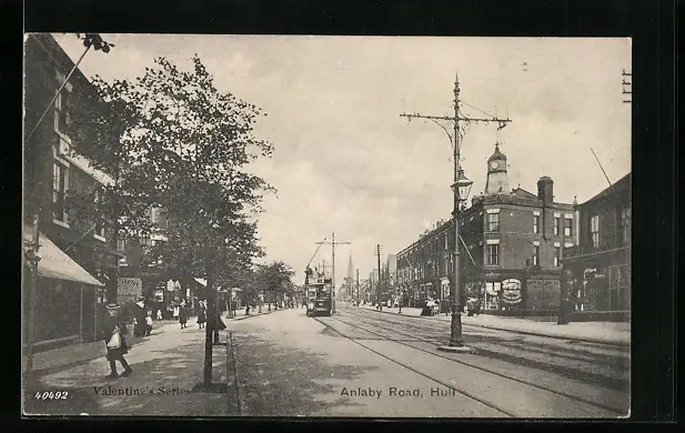 AK Hull, Anlaby Road, Strassenbahn unterwegs