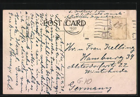 alte Ansichtskarte, gelaufen 1930, Briefmarke entfernt, Eckknick li. oben, guter Zustand