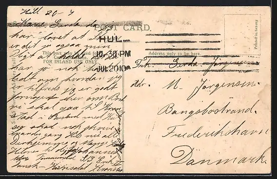 alte Ansichtskarte, gelaufen, Briefmarke entfernt, rückseitig Oberflächenschaden, Eckknicke li. unten u. re., guter Zustand
