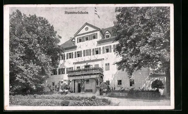 AK Hummelshain /Th., Grosses weisses Gebäude mit Reichsfahne