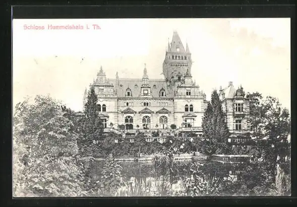 AK Hummelshain i. Th., Ansicht des Schlosses mit kleinem Teich