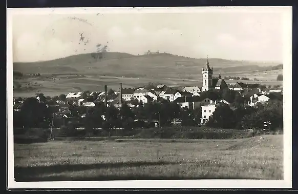 AK Humpolec, Ortsansicht mit Bergpanorama und Burg