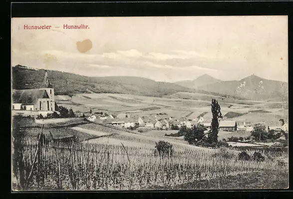 AK Hunaweier, Ortsansicht mit Bergen