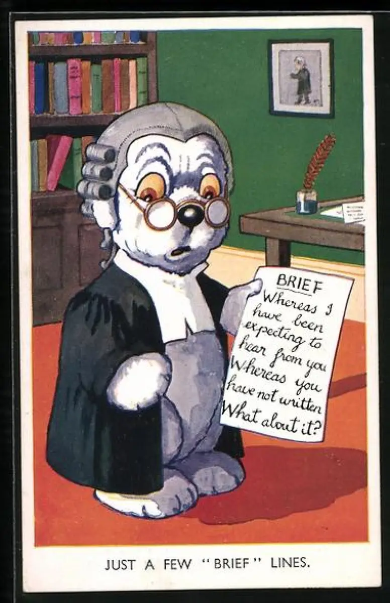 AK Hund in Richterkostüm und Brief, Whereas I have been expecting to hear from you