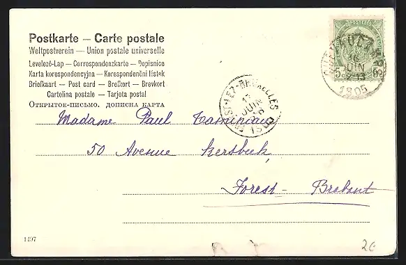gelaufen 1905, Einrisse u. Bugspur unten li., guter Zustand