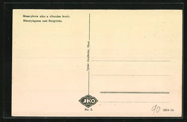 Personenbezogene Daten auf der Rückseite der Karte wurden durch blauen Textmarker unkenntlich gemacht. Die blauen Stellen sind auf die Vorderseite durchgeweicht und wirken sich negativ auf das Postkartenfoto aus